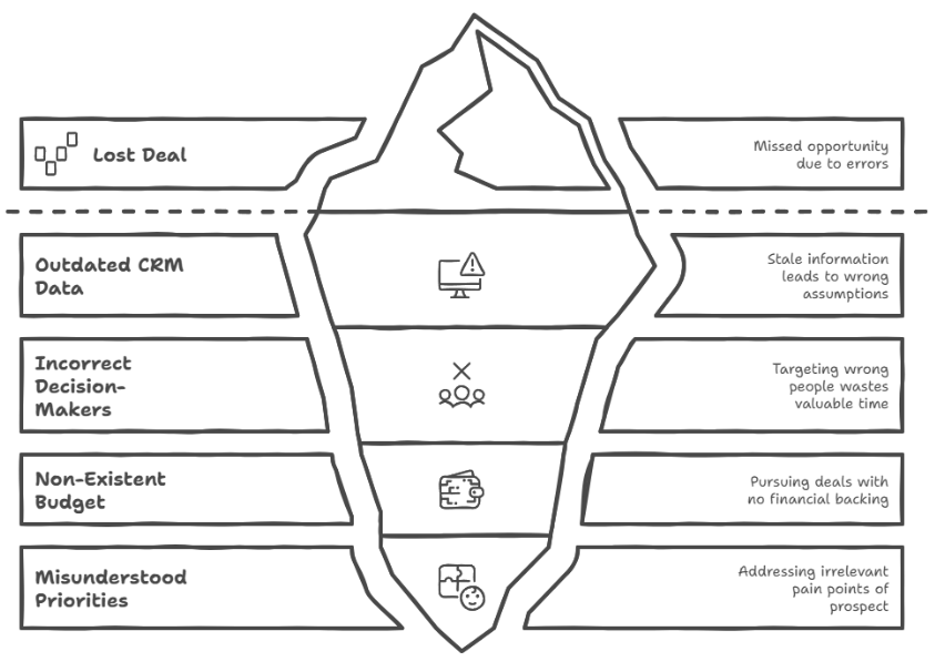 What we thought was a perfect lead was actually a house of cards built on outdated, incomplete, and flat-out wrong information. Our CRM data was 18 months old. The company had gone through a major restructuring, changed their technology priorities, and shifted their business model – none of which our “comprehensive” database had captured. We were essentially pitching a solution for a company that no longer existed.